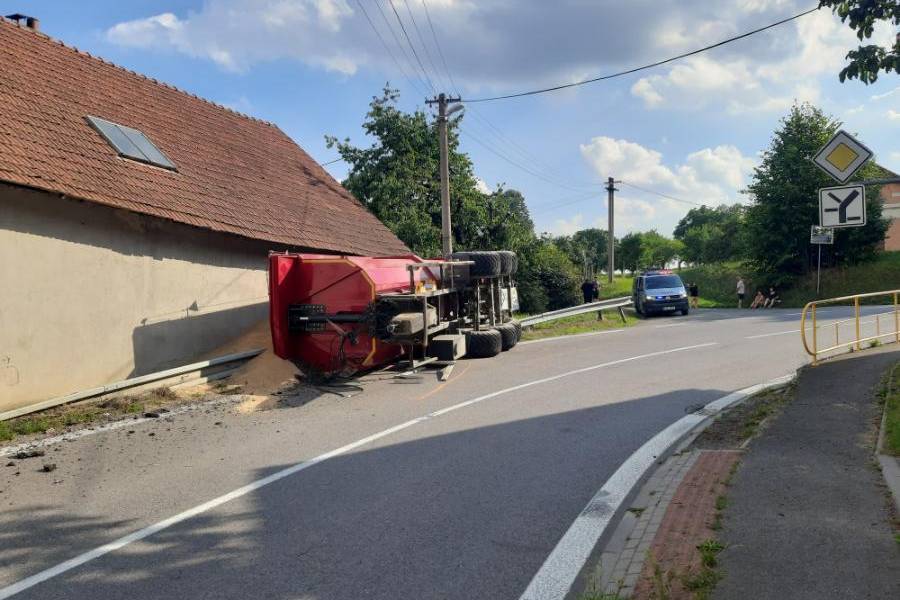 Řidič naštěstí vyvázl bez zranění. Havarované vozidlo ale poškodilo svodidla, vozovku a střešní krytinu domu. Přitom se vysypala značná část nákladu, který vyvrátil dveře dílny přiléhající k domu. „Za dveřmi stála bruska kotoučových pil, ta byla tlakem pšenice povalena na přední kapotu v dílně stojícího vozidla Hyundai,“ doplnila mluvčí.