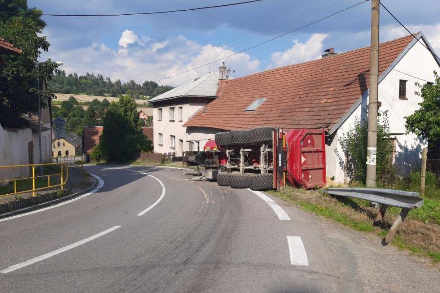 Nehoda se stala v sobotu 19. srpna krátce po čtrnácté hodině odpoledne na silnici I/19 mezi Novým Městem na Moravě a Bystřicí nad Pernštejnem. „Osmnáctiletý řidič v obci Divišov při průjezdu levotočivé zatáčky v klesání nepřizpůsobil rychlost jízdy zejména svým schopnostem, vlastnostem vozidla a převáženého nákladu a došlo k převrácení traktorového návěsu vpravo mimo komunikaci,“ uvedla mluvčí policie Dana Čírtková.