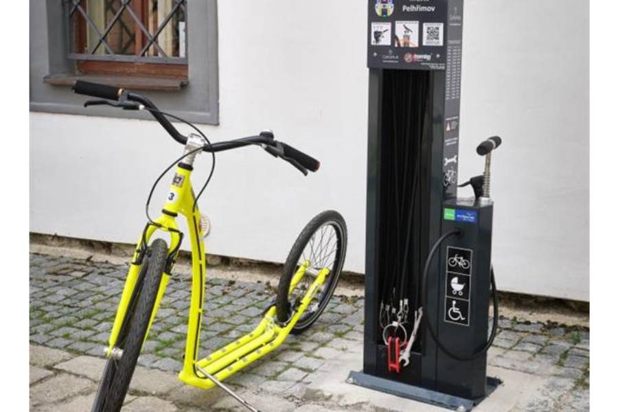 Nová servisní stanice vznikla v Děkanské ulici, kousek od Turistického informačního centra. „Umístění ve středu města není náhodné. Cílem bylo mít stanici dostupnou čtyřiadvacet hodin denně a ideálně na místě, které navštěvuje velký počet lidí,“ říká Nela Štěpánková z oddělení cestovního ruchu Kulturních zařízení města Pelhřimova.