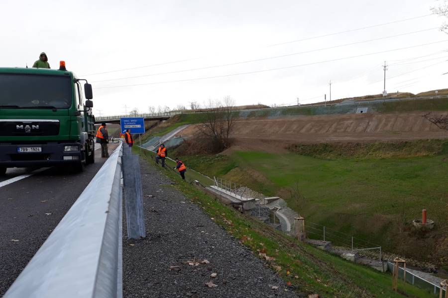 V těchto dnech probíhá instalace svodidel na mostech, úprava krajnic a dokončování systému odvodnění. Úpravami prochází i okolní terén. „Kolem nové komunikace jsou postupně vysazovány desítky sazenic listnatých stromů, jako jsou habry, lípy nebo javory,“ vyjmenovává mluvčí ŘSD Jiří Veselý.
