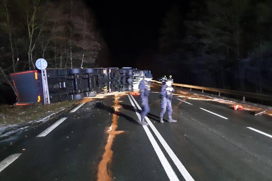 Před sedmou hodinou ráno došlo mezi obcemi Knyk a Český Dvůr ke střetu kamionu s osobním autem. „Řidič osobní vozidlo Citroen odstavil z důvodu nesjízdné komunikace (náledí) při pravém okraji vozovky a následně řidič jedoucí s nákladní soupravou narazil do stojícího vozidla. Ke zranění osob nedošlo,“ dodala policejní mluvčí Michaela Lébrová.