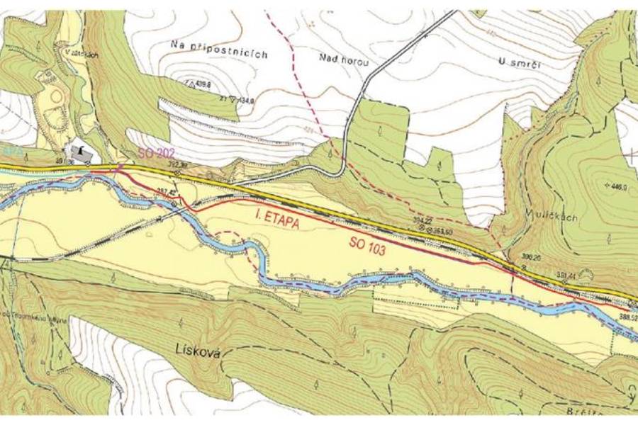 Dlouho plánovaná stavba odstartuje 15. března a proběhne ve třech etapách. Jako první bude vybudován prostřední úsek. Ten povede podél silnice I/23 zhruba od vyústění Klapovského potoka do řeky Jihlavy. „Potok bude stezka překračovat pomocí nové lávky a dále procházet pod železniční tratí, podél severní opěry. Dále povede v souběhu s železniční tratí až po úrovňový železniční přejezd,“ říká mluvčí třebíčské radnice Irini Martakidisová.