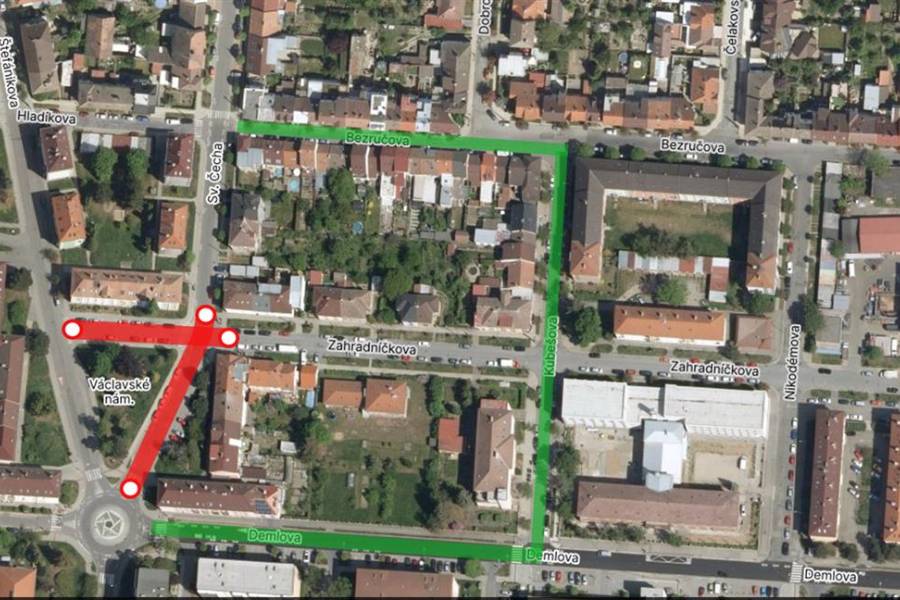 Od 2. dubna do 31. srpna letošního roku proběhne kompletní rekonstrukce Václavského náměstí. Komunikace i chodník na náměstí budou zcela uzavřeny. Objížďka povede ulicemi Demlova, Kubešova a Bezručova.