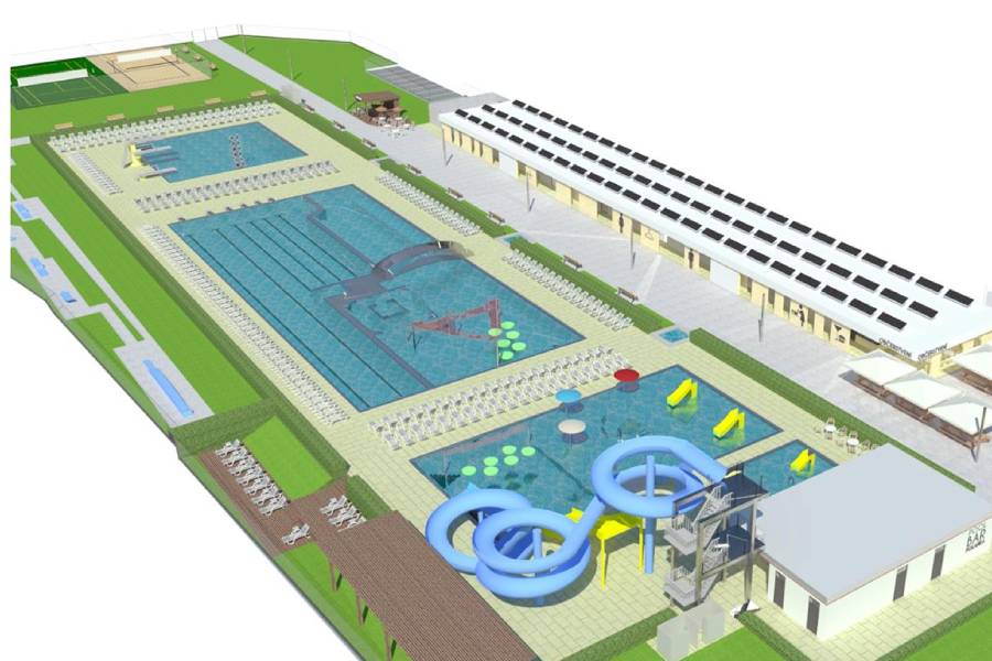Zásadní proměnou projde velký bazén, který bude nově rozdělen na část plaveckou a část relaxačně zábavní. Současně dojde k rozšíření odpočinkových ploch u bazénu, upraven bude i vstup s terminálem.