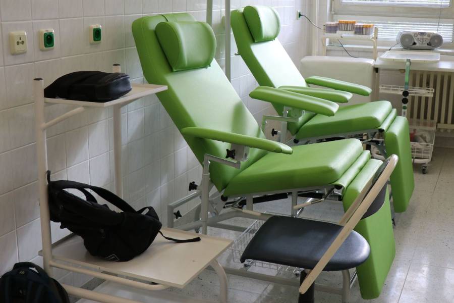 Zářivou barvu lehátek vybraly zdejší sestřičky. „Vybraly jsme zelenou, aby místnost oživila. Červená barva nám připadala agresivní a modrá moc studená. Odběrový sál je otočený tak, že tam nesvítí moc sluníčko, chtělo to prostě oživit,“ vysvětluje Martina Vrbíková z oddělení klinických laboratoří a transfúzní služby novoměstské nemocnice.