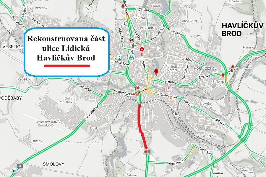 Jedná se o zhruba kilometrový úsek Lidické ulice mezi světelnou křižovatkou s Humpoleckou, Masarykovou a Dolní ulicí, až po čerpací stanici Shell, vpravo směrem na Jihlavu. „Diagnostickým průzkumem bylo zjištěno, že vozovka vykazuje nadstandardní množství poruch, zejména pak podélných deformací. Jde například o vyjeté koleje, které už přešly do stádia plošných deformací,“ uvedl mluvčí ŘSD Jiří Veselý.