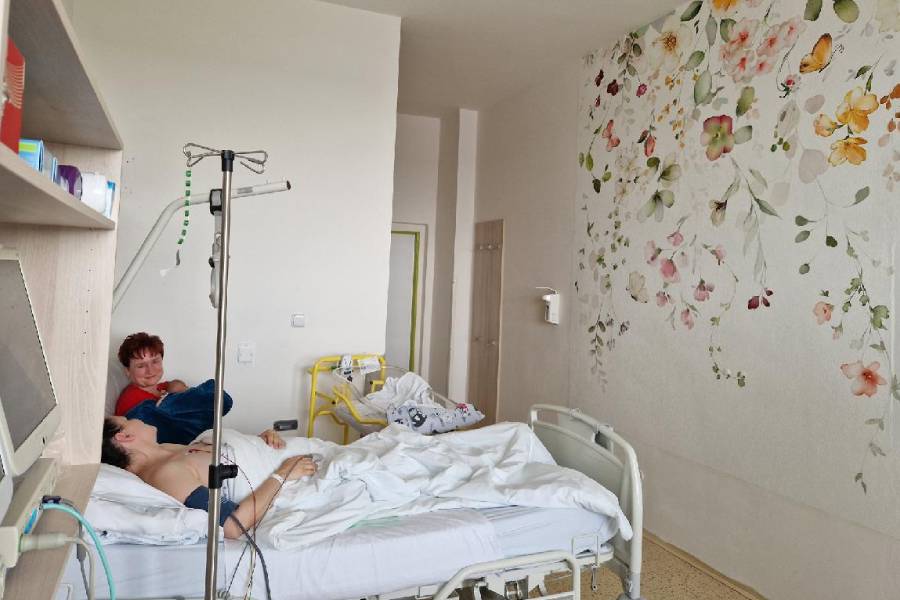 Rodinný pokoj je vybaven pohodlnými polohovacími křesly, příjemnou atmosféru navozuje tapeta s motivem květin. Pobývat zde mohou až dvě maminky.