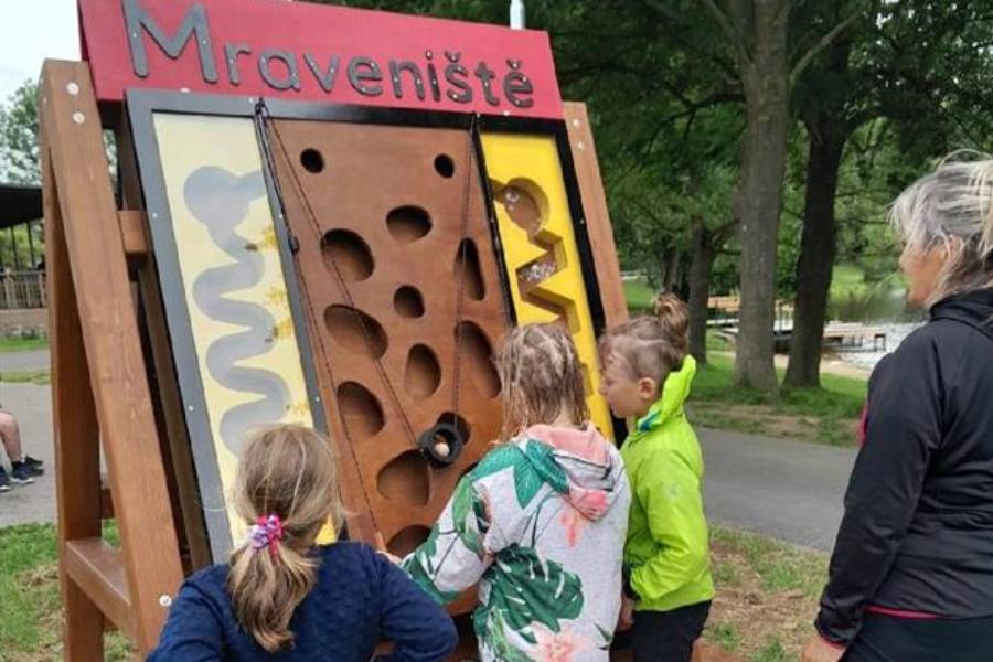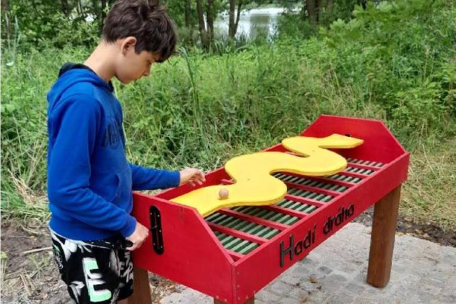 „Kuličkodráha nabízí zábavu pro všechny věkové kategorie a obsahuje pět originálních hracích prvků. Hlavním tématem těchto prvků je dřevěná kulička, kterou si návštěvníci mohou zakoupit v turistickém informačním centru nebo v občerstvení u Stráže za cenu padesát korun,“ popisuje mluvčí pelhřimovské radnice Andrea Unterfrancová. S kuličkou pak můžete zdolat Hadí dráhu a Žabí cirkus, proplést se Mraveništěm, vyzkoušet Rybkolov nebo sledovat její dráhu v Okapce.