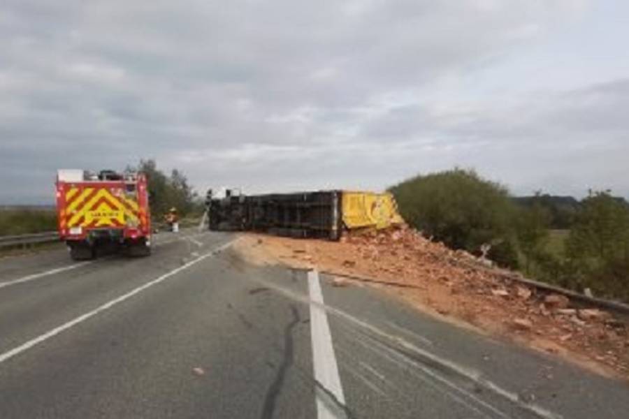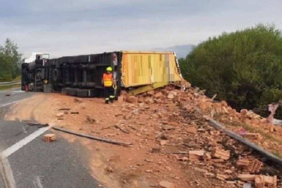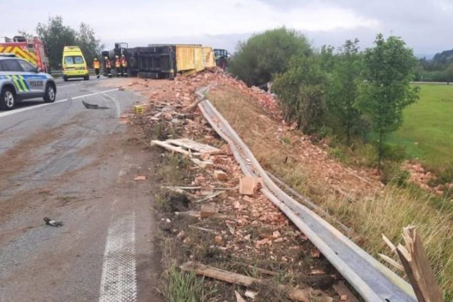 K havárii došlo v pondělí 19. srpna po osmé hodině ráno. Nákladní vozidlo převážející cihly na paletách skončilo převrácené na boku. Na místě zasahovali policisté a hasiči. „Nehoda se obešla bez zranění. Hasiči provedli na havarovaném voze protipožární opatření, uniklé provozní kapaliny zlikvidovali sorbentem a místo události technicky zabezpečili. Komunikace byla po havárii neprůjezdná,“ uvedla mluvčí krajských hasičů Petra Musilová.
