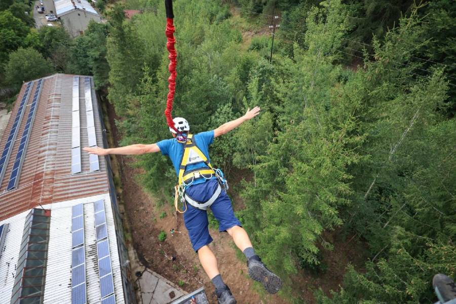 Seskok na laně se speciálním systémem automatického magnetického brždění můžete doplnit dalšími aktivitami, jako například slanění komína s instruktorem nebo výstup nahoru ferratovým stylem. Plošina se nachází ve výšce 26 metrů, celková výška komína je 46 metrů. „Zatím se skáče primárně o víkendech, ale po dohodě si je možné rezervovat i jiný den. Skoky z komína však nejsou možné při nepřízni počasí, jako je třeba déšť, bouřka nebo silný vítr,“ upřesnil David Matuška.