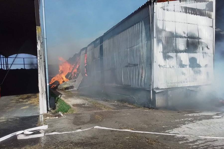 Požár vypukl před druhou hodinou odpoledne a jeho likvidace se protáhla až do večerních hodin. „Kromě hašení hořícího objektu se hasiči zaměřili také na ochranu okolních objektů. Z přilehlého teletníku vyvedli 30 telat,“ uvedla mluvčí krajských hasičů Petra Musilová.