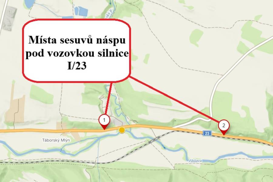 K havarijní situaci na silnici I/23 došlo kvůli nadměrným srážkám v polovině září. Sesuvy se tehdy objevily na dvou místech silnice směrem na Vladislav, a to v blízkosti Táborského mlýna, o délce 7 metrů a zhruba o kilometr dál před železničním přejezdem, o délce 25 metrů. Z důvodu bezpečnosti silničáři v těchto místech zúžili vozovku a zároveň byl v daném úseku omezen provoz s kyvadlově řízenou dopravou.