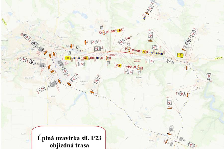 Stavební práce jsou rozvrženy do tří týdnů a vynutí si úplnou uzavírku. Objízdná trasa povede po silnicích II/351 a II/401 přes Třebíč-Jejkov, Slavičky a Číměř.