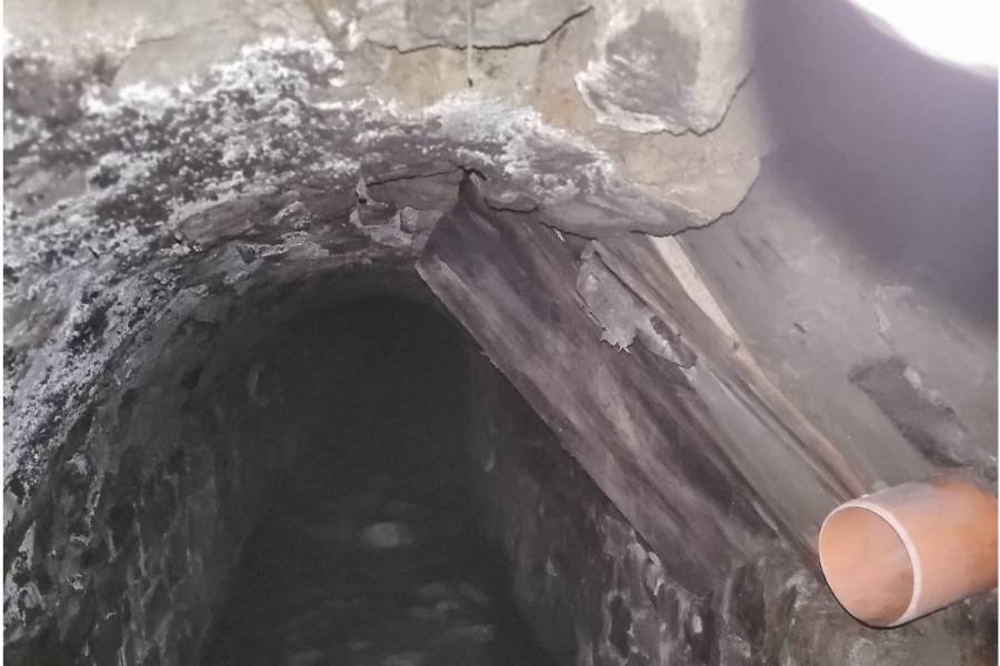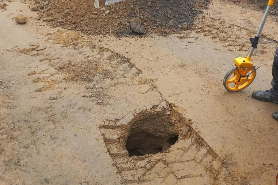Rekonstrukci zahájili silničáři počátkem září, nyní práce probíhají v zastavěném území Krucemburku. „Právě zde, v blízkosti náměstí, došlo po odkrytí konstrukčních vrstev vozovky k náhlému propadu. Vznikl kráter o průměru cca 40 cm, který dal nahlédnout do útrob fragmentů historické dešťové kanalizace. Ta se nalézá přibližně 90 cm pod povrchem,“ popsal okolnosti nálezu mluvčí ŘSD Jiří Veselý.