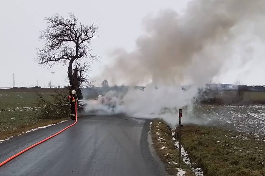 „Hlášení o události jsme na lince tísňového volání přijali v 10:48 hodin. V době příjezdu jednotek na místo události byl vůz v plamenech,“ uvedla mluvčí krajských hasičů Petra Musilová.