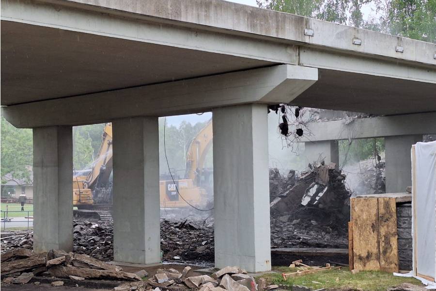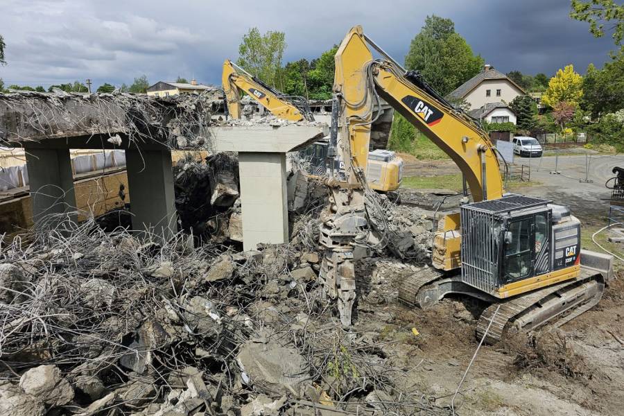 „Za pomocí těžké techniky, především bagrů vybavených hydraulickými nůžkami, se nám podařilo dokončit podle plánu demolici původního mostu. Svezeno na mezideponii bylo kolem 2 000 tun suti. Ta teď bude vytříděna a částečně recyklována tak, že nadrcený materiál bude znovu zapracován do stavby,“ uvedl mluvčí ŘSD Jiří Veselý.