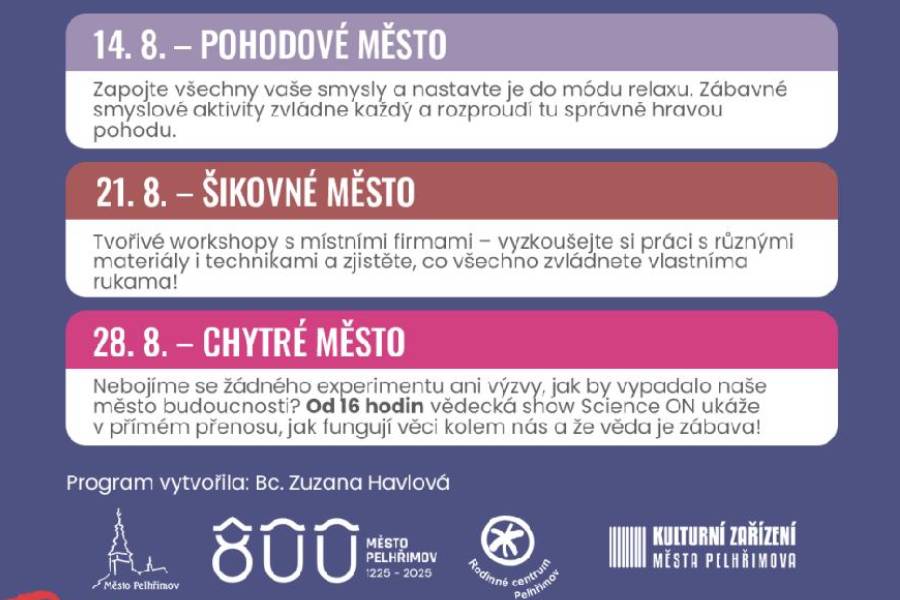 „Chtěli jsme vytvořit něco, co bude bavit malé i velké, a zároveň bude mít i vzdělávací přesah. Základ tvoří profesionální programy v kombinaci s vystoupeními místních šikovných lidí,“ přibližuje hlavní organizátorka Zuzana Havlová.