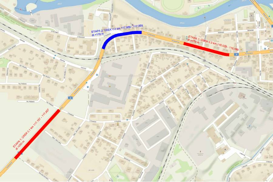 Práce jsou rozvrženy do dvou etap. První etapa bude zahájena v pondělí 28. července a skončí ve čtvrtek 31. července. Během této doby budou dělníci pracovat na dvou úsecích. Jeden z nich, o délce 170 metrů, začne za křižovatkou s ulicemi Na Losích a Švermova. Druhý úsek, dlouhý 250 metrů, začne u křižovatky s ulicí U Kasáren a skončí pod hasičskou stanicí.