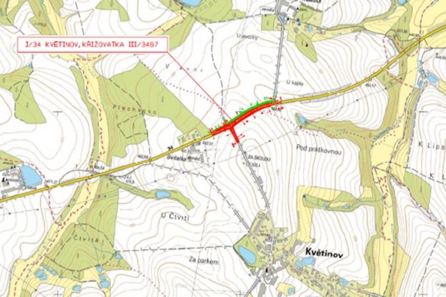 Po dobu prací bude úsek zcela uzavřen a doprava odkloněna na objízdnou trasu. Ta povede obousměrně po silnicích nižších tříd přes Novou Ves u Nového Města na Moravě, Radešínskou Svratku, Bobrovou, Zvole a Křídla.