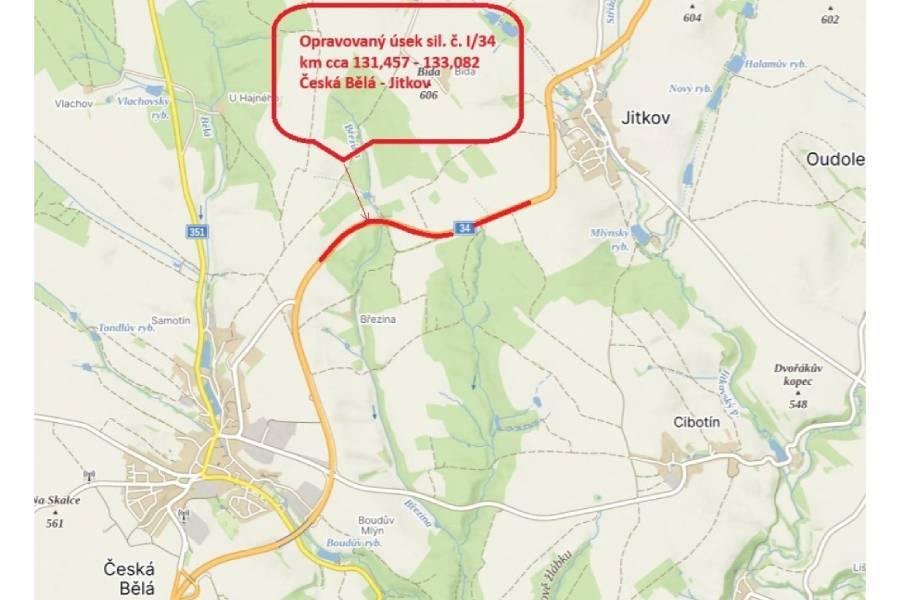 Oprava se týká úseku v délce 1,6 kilometru blíže k Jitkovu. Podle posledního sčítání tudy denně projede kolem 6 tisíc vozidel, z nichž třetinu tvoří nákladní a kamionová doprava. Vozovka je v místě dlouhodobě poškozená – objevují se výtluky i vyjeté koleje. „Oprava bude spočívat ve výměně obrusné vrstvy. To znamená, že vozovka bude odfrézována do hloubky cca 5 cm a položen nový asfalt,“ uvedl mluvčí ŘSD Jiří Veselý.