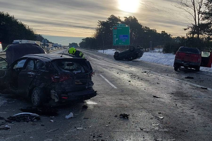 První nehoda se stala po osmé hodině ráno na 152,5 kilometru dálnice ve směru na Brno. „Při nehodě došlo dle současných informací ke dvěma zraněním a nehoda byla s účastí celkem šesti osobních vozidel. Dálnice je ve směru na Brno neprůjezdná,“ sdělila policejní mluvčí Jan Kroutilová.
