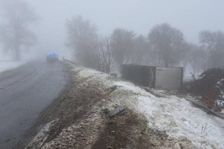 U Jitkova skončil kamion v příkopu. Policisté apelují na řidiče