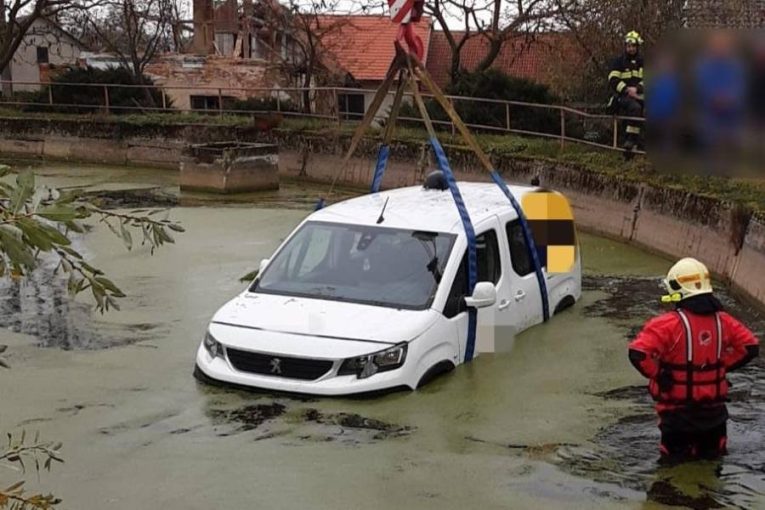 Auto sjelo do rybníka. Řidička ho špatně zabrzdila