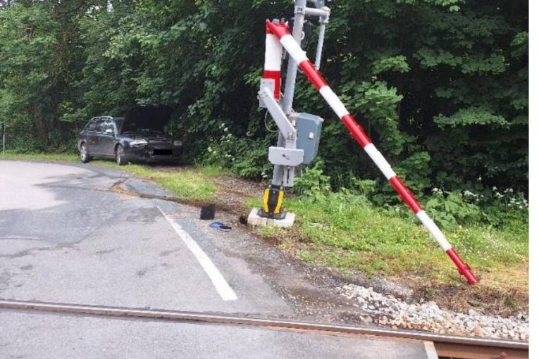 Havárie u Světlé. Řidič poškodil železniční přejezd, policie hledá svědky