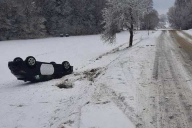 Řidička u Smrčné nezvládla jízdu na zasněžené silnici a vybourala se