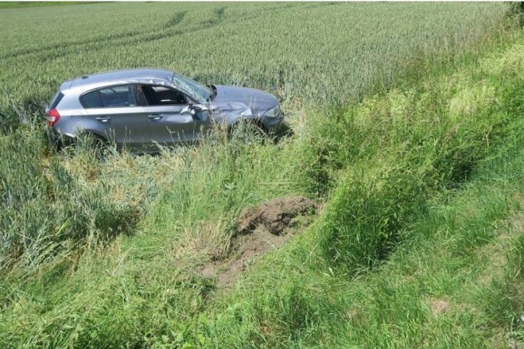 Řidič BMW brzdil kvůli cyklistovi, vyletěl ze silnice a skončil v poli