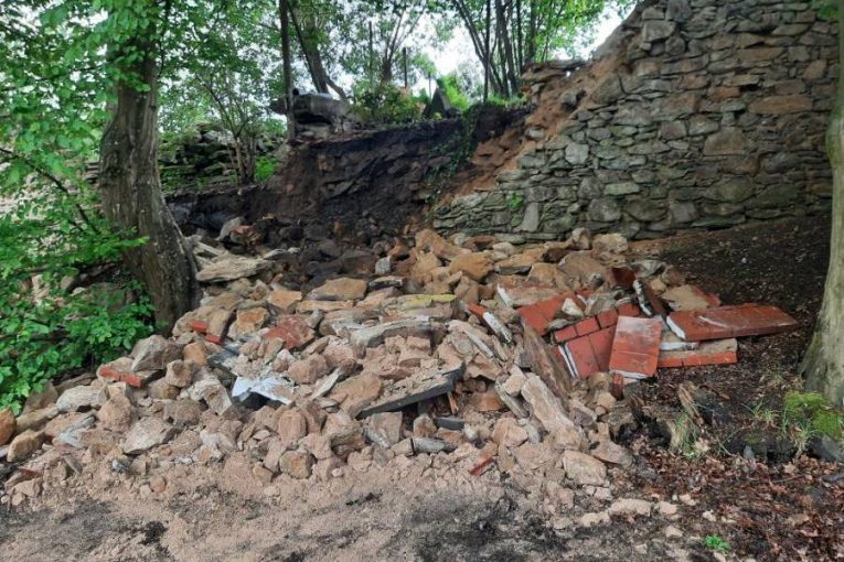 Kameny z padající zdi u zámku v Pacově zranily dvě seniorky. Zasahoval vrtulník