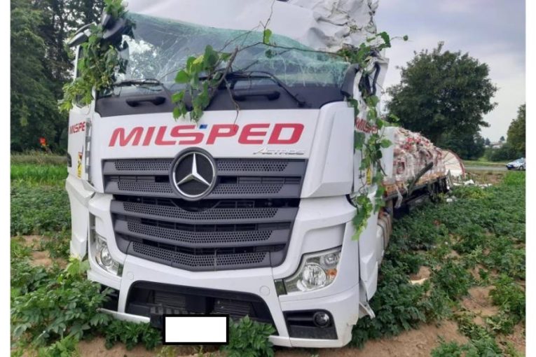 Řidič nesledoval řízení, havaroval a rozsypal náklad po poli. Škoda se vyšplhala téměř na milion