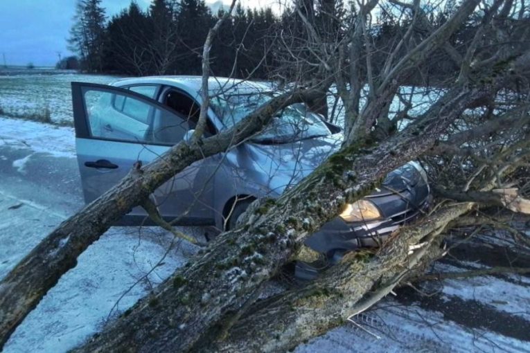 Ranní nehoda na Žďársku. Auto narazilo do spadlého stromu