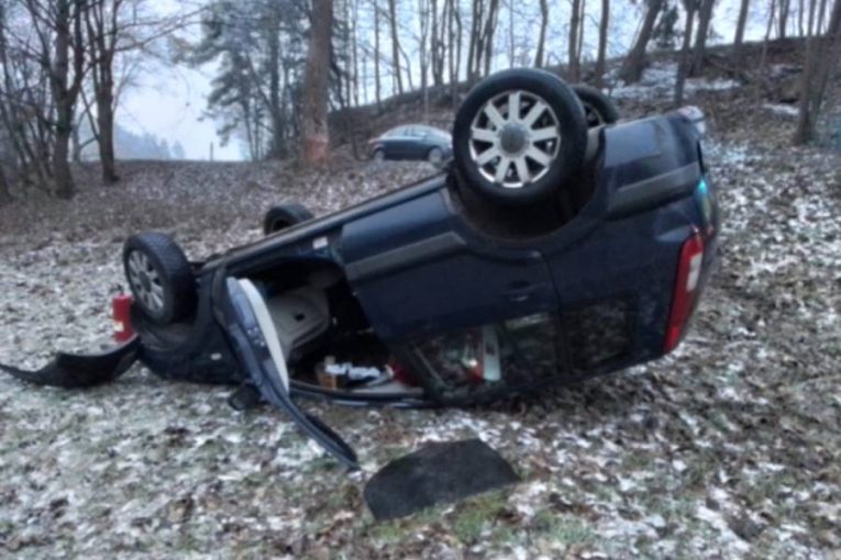 Auto u Rožné skončilo na střeše, řidička se zranila