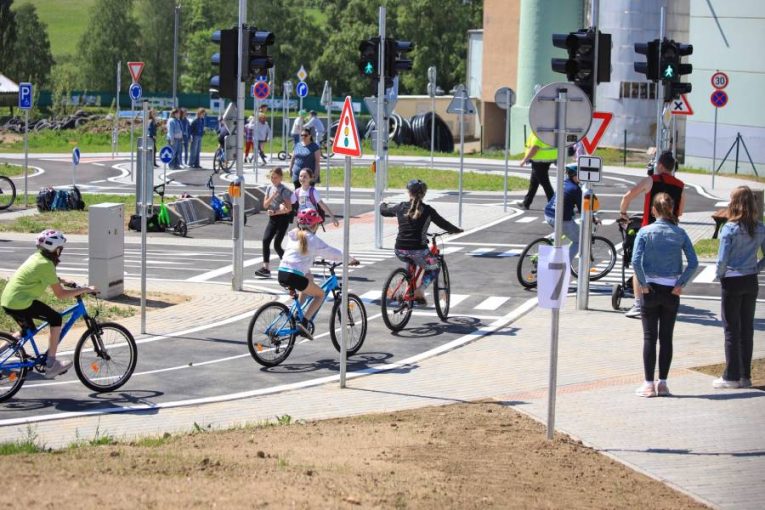 Malí cyklisté v Bystřici trénují bezpečnou jízdu na novém dopravním hřišti