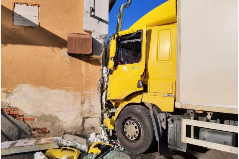Nehoda náklaďáku v Mostišti. Řidička narazila do budovy