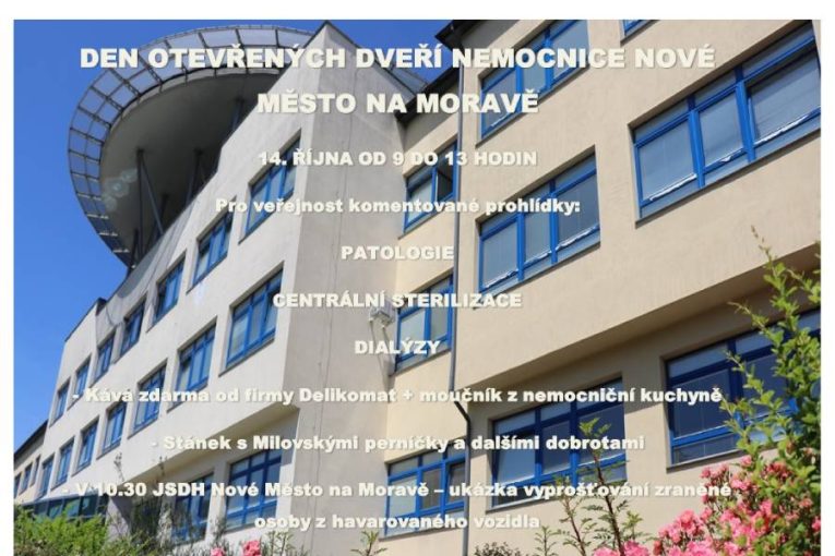 NOVÉ MĚSTO NA MORAVĚ – Nemocnice v Novém Městě na Moravě otevře v sobotu 14. října své prostory veřejnosti. Zájemci si tak budou moci prohlédnout oddělení, která jsou jindy nepřístupná. …