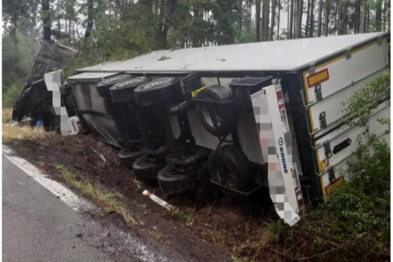 Kamion u Velké Bíteše skončil v příkopu. Škoda přesáhla 1,5 milionu