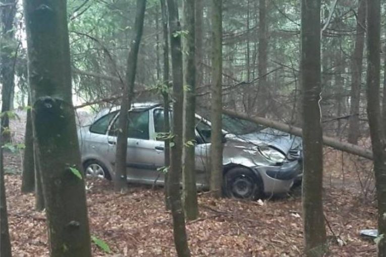 Opilý řidič se zákazem řízení ujížděl policistům. Pak v lese havaroval