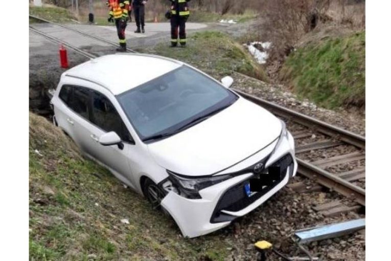 Auto na Novoměstsku uvízlo po smyku v kolejišti
