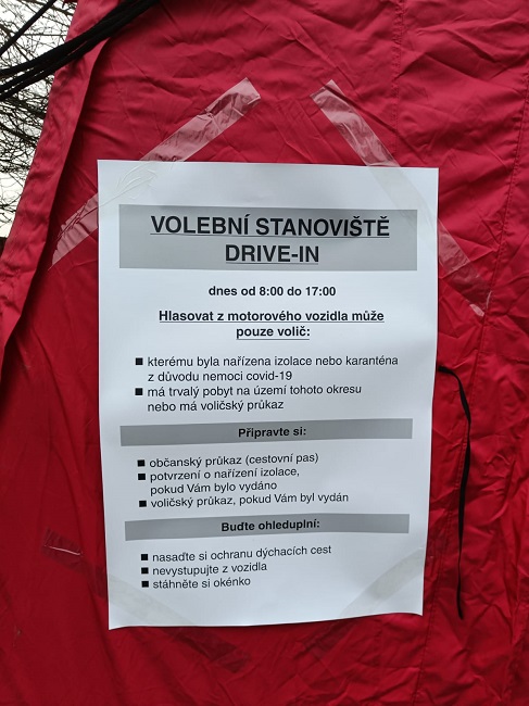 U volebního stanoviště lze hlasovat ve středu 11. ledna, v případě druhého kola volby prezidenta ve středu 25. ledna, a to od 8:00 do 17:00. „U drive-in stanovišť mohou volit lidé, kteří mají trvalý pobyt v okresu, pro které bylo volební místo zřízeno, nebo mají voličský průkaz. Musí mít i potvrzení od lékaře nebo hygieniků, případně čestné prohlášení o nařízené karanténě či izolaci, prokázat se ale mohou i potvrzením o pozitivním testu na covid-19,“ informovala Javoříková.