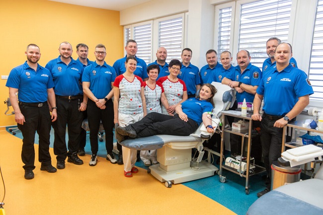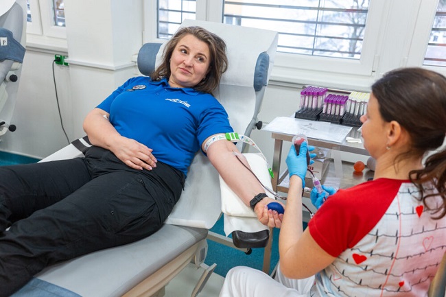 V odběrové místnosti se nakonec sešlo 13 příslušníků městské policie. „Bylo to složité, sloužíme noční, denní, někdo musel zůstat na služebně. Ale nakonec to klaplo,“ vysvětlila Jaroslava Solanská. „Já i kolegové jezdíme darovat krev do různých zdravotnických zařízení, pracujeme ve Vsetíně, tedy jsme se zcentralizovali, abychom mohli dát krev všichni dohromady.“