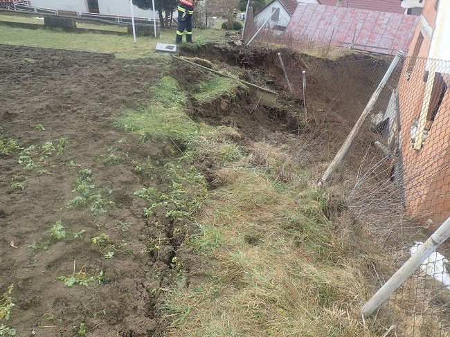Pět jednotek hasičů na místě zasahovalo celé dopoledne. Vyhlášen byl druhý stupeň požárního poplachu. „Po příjezdu na místo, kde se již nacházel zástupce obce i geotechnik, hasiči průzkumem zjistili, že se pohnul břeh o velikosti okolo jednoho tisíce metrů čtverečních promáčené hlíny. Po rozhodnutí geotechnika začali hasiči čerpadly odčerpávat vodu ze studní, nacházejících se nad místem sesuvu, aby se snížila hladina spodních vod,“ vylíčila mluvčí hasičů Lucie Javoříková.