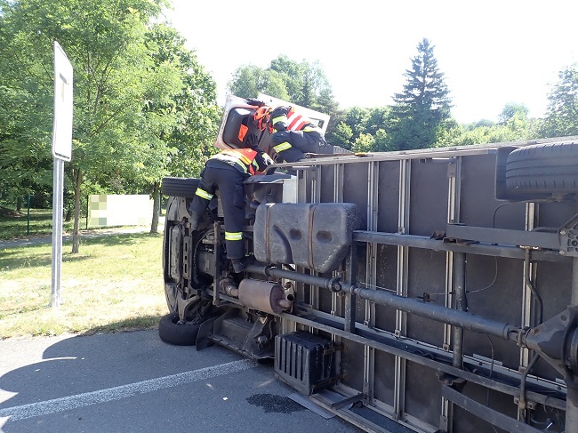 Na místo vyrazili hasiči ze Vsetína. „Hasiči provedli zajištění místa nehody, opatření proti úniku provozních kapalin a možnému vzniku požáru. Velitel zásahu si na místo vyžádal vyprošťovací automobil z centrální hasičské stanice Zlín z důvodu dalšího možného úniku provozních kapalin a uvolnění zablokované komunikace. S jeho pomocí se podařilo automobil obrátit zpět na kola. Hasiči následně odtlačili vozidlo mimo komunikaci a po závěrečném úklidu se vrátili zpět na základnu,“ vylíčil mluvčí hasičů David Martinec.
