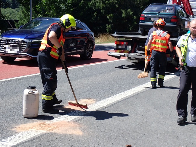 Na místo vyjely dvě jednotky hasičů. „Hasiči na místě provedli zajištění nehody, zamezili úniku provozních kapalin a provedli protipožární opatření. Jedné osobě poskytl první psychickou pomoc vyškolený člen týmu posttraumatické péče. Po zadokumentování nehody byl jeden automobil naložen na vůz odtahové služby a druhý hasiči odtlačili mimo komunikaci, aby mohla být komunikace plně průjezdná,“ uvedl mluvčí hasičů David Martinec.