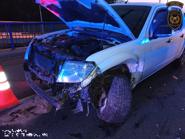 Havárie se stala dnes před půl šestou ráno. „Pětadvacetiletý řidič nákladního automobilu si při vyjíždění od pravého okraje komunikace zřejmě nepočínal dostatečně obezřetně a vjel do dráhy za ním jedoucímu osobnímu automobilu, které řídil o tři roky mladší muž. Po vzájemném střetu obou automobilů bylo osobní vozidlo odhozeno na zábradlí nedalekého mostku,“ popsal policejní mluvčí Petr Jaroš.