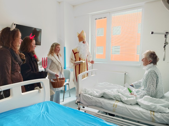 Nadpozemskou družinu tvořili žáci ze Střední školy průmyslové, hotelové, zdravotnické a Vyšší odborné školy Uherské Hradiště, kteří do nemocnice pravidelně docházejí na odborné praxe. „S místní zdravotnickou školou spolupracujeme dlouhodobě a jsem moc ráda, že za námi dorazili i letos. Našim pacientům zpestřili svou návštěvou den. Moc jim za to děkujeme. Ač se mnohé styděly, oči jim zářily a na oddělení byla krásná slavnostní nálada,“ ocenila vedoucí staniční sestra Dana Hanáčková.