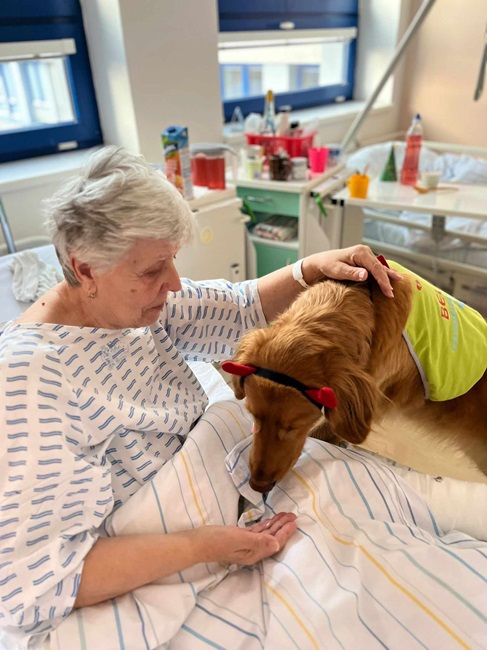O přínosech canisterapie nemá jedinou pochybnost ani staniční sestra oddělení následné péče Petra Žákovská: „Vybavují se mi pacienti, kteří se rozmluvili při pohledu na tu němou tvář. Pacienti, kteří přestali myslet na bolest, jen aby si pejska pohladili. A to vše i nyní v předvánočním období je pro naše klienty velmi povzbudivé a prospěšné.“