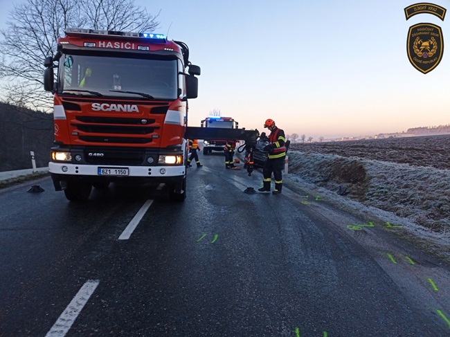 Nehody se nevyhnuly ani Vsetínsku. K jedné z nich došlo po sedmé hodině ranní u obce Branky. „Na kluzké vozovce se střetla dvě osobní auta. Všichni cestující utrpěli při nárazu zranění. Pro mladou řidičku byl přivolán vrtulník, který ji transportoval do nemocnice. Z druhého vozidla řidič skončil v péči posádky zdravotnické záchranné služby. Jeho spolujezdce, který uvízl ve vozidle, neboť dveře byly nárazem poškozeny, vyprostili hasiči s využitím hydraulického vyprošťovacího zařízení a taktéž jej předali do péče zdravotníkům,“ vylíčila mluvčí.