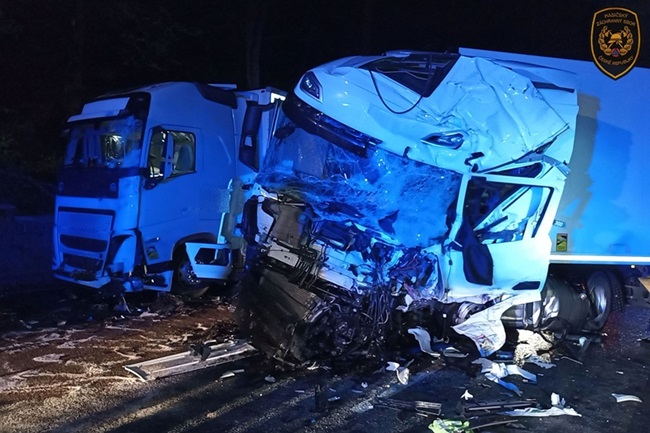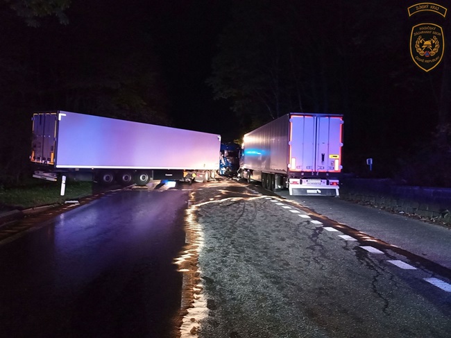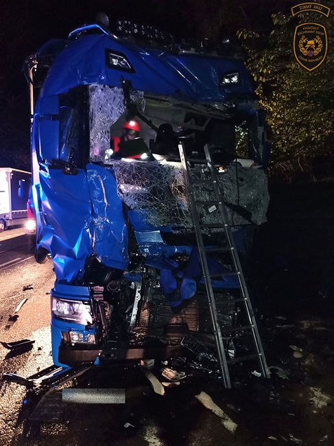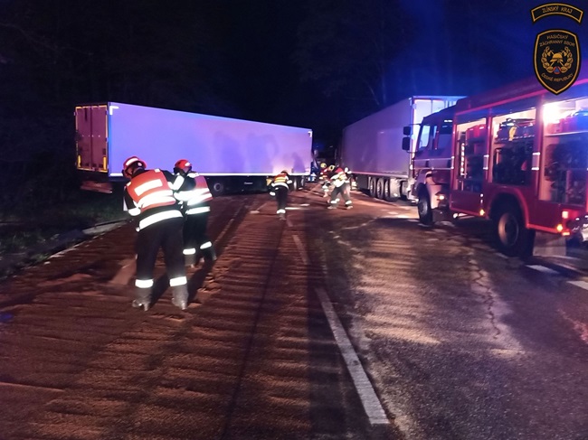 „Čtyřiačtyřicetiletý řidič nákladního vozidla jedoucí od Slovenska pravděpodobně vlivem mikrospánku vjel k pravému okraji vozovky, kde narazil do zaparkovaného nákladního automobilu. Ten byl vlivem nárazu vymrštěn do zaparkovaného kamionu před ním,“ popsal policejní mluvčí Radomír Šiška. Předběžná škoda se odhaduje na tři miliony korun. Alkohol policisté dechovou zkouškou vyloučili.